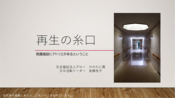 更宿連_新塩崎荘(更生施設) 「更生施設から地域へつなぐ支援~通所事業の実践を通じて~」