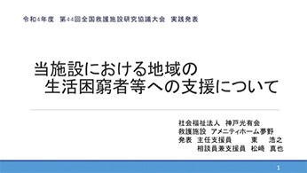 救護施設ナザレ園 「開放 循環型セーフティネット施設を目指して」 地域共生社会に向けての救護施設の役割を果たすための取り組み