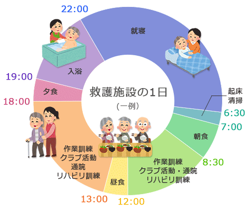 救護施設は、さまざまな障害がある人が健康で安心して日常生活をおくる場です。一人ひとりの抱える問題を受け止めて、誰もがその人らしい人生をおくることができるよう支援します。なお、サービス内容の詳細は施設ごとに異なっています。