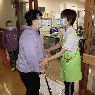 コロナ禍の中、今は毎朝の検温と共に警戒ステージ4になってからは利用者のマスク交換も行う事になりました。