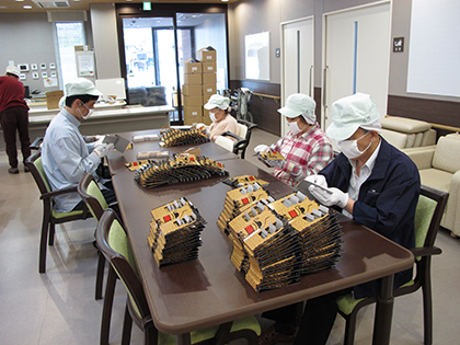 食事の準備・提供以外の時間では、利用者さんの作業訓練(企業から内職の仕事等)のサポートも行っています。